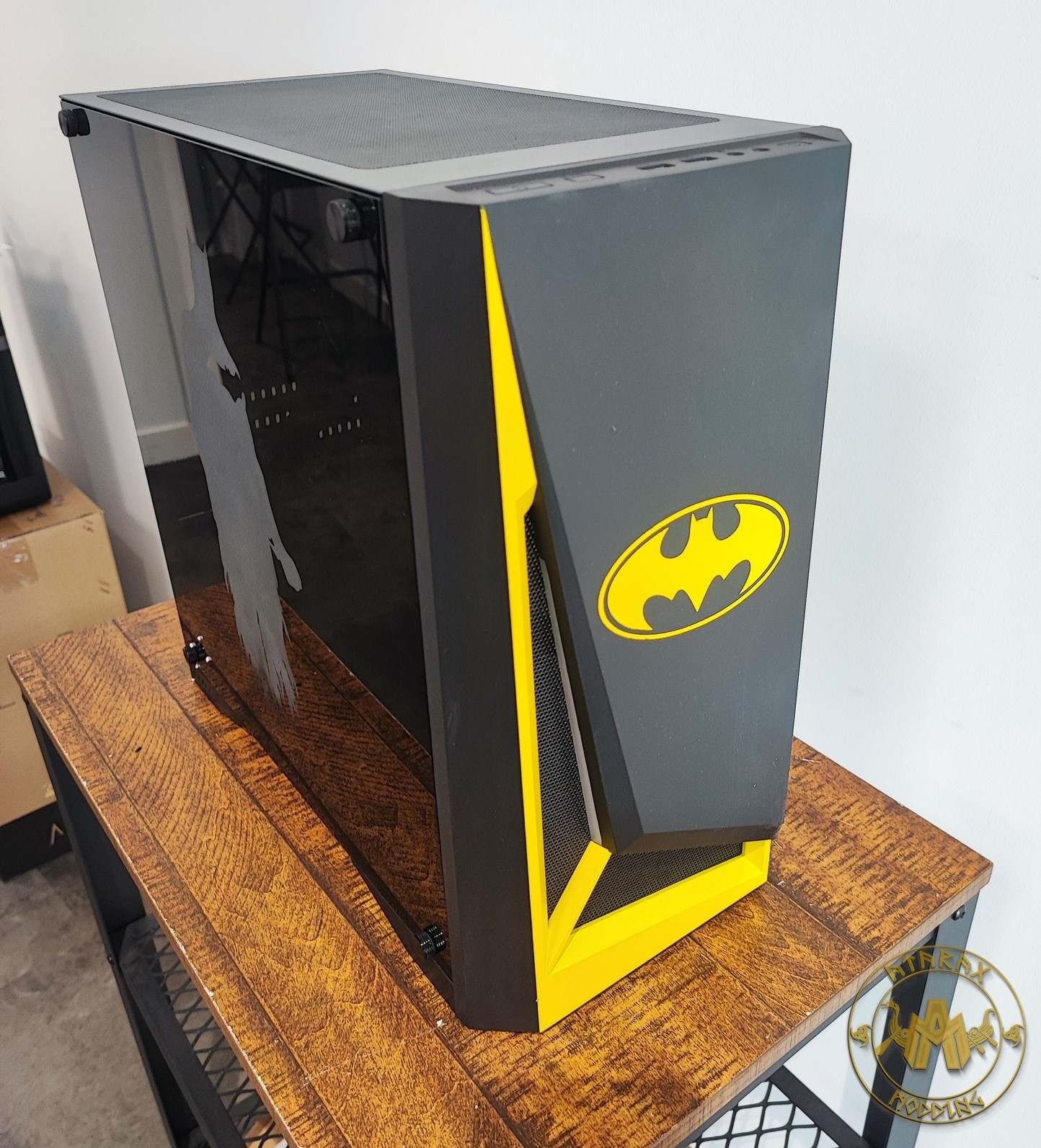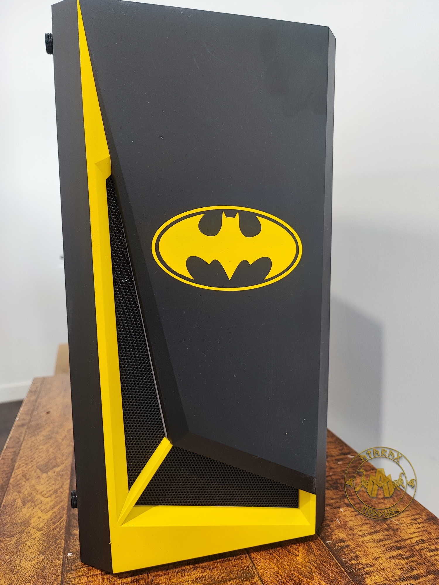 Modding : Petit Batman Description :Projet fait pour un client souhaitant relooker sa machine de travailSpécifications TechniquesBoîtier : Antec DP301Gallerie Retour à la liste des mods
